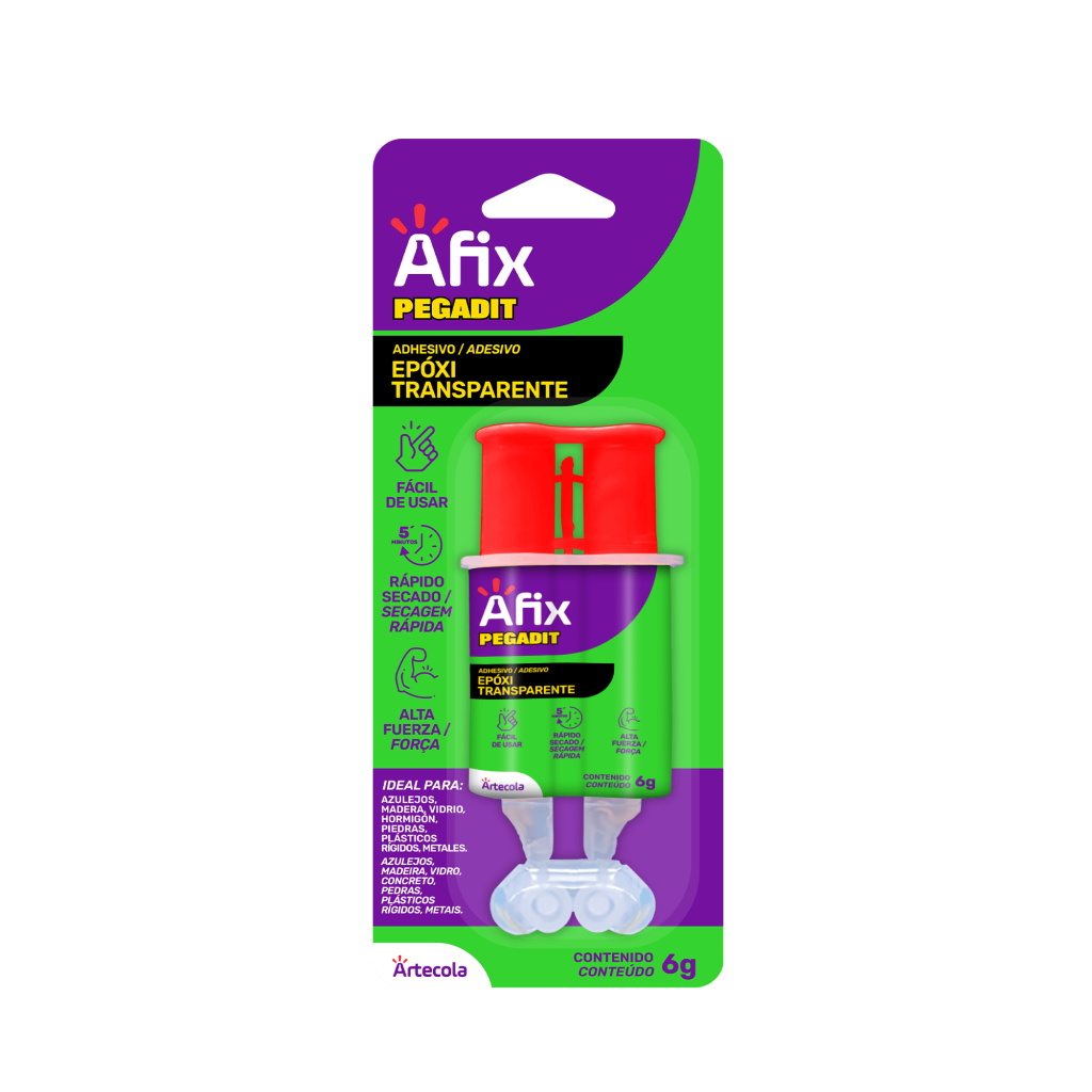 Es un adhesivo epóxico bicomponente transparente (resina + endurecedor) para uso profesional y doméstico para múltiples aplicaciones en diversos materiales.